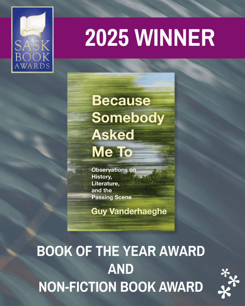 It is our pleasure to announce that Guy Vanderhaeghe’s Because Somebody Asked Me To: Observations on History, Literature, and the Passing Scene won two prestigious prizes at the 2025 Saskatchewan Book Awards last Friday: the Saskatchewan Book of the Year Award and Non-fiction Book Award!