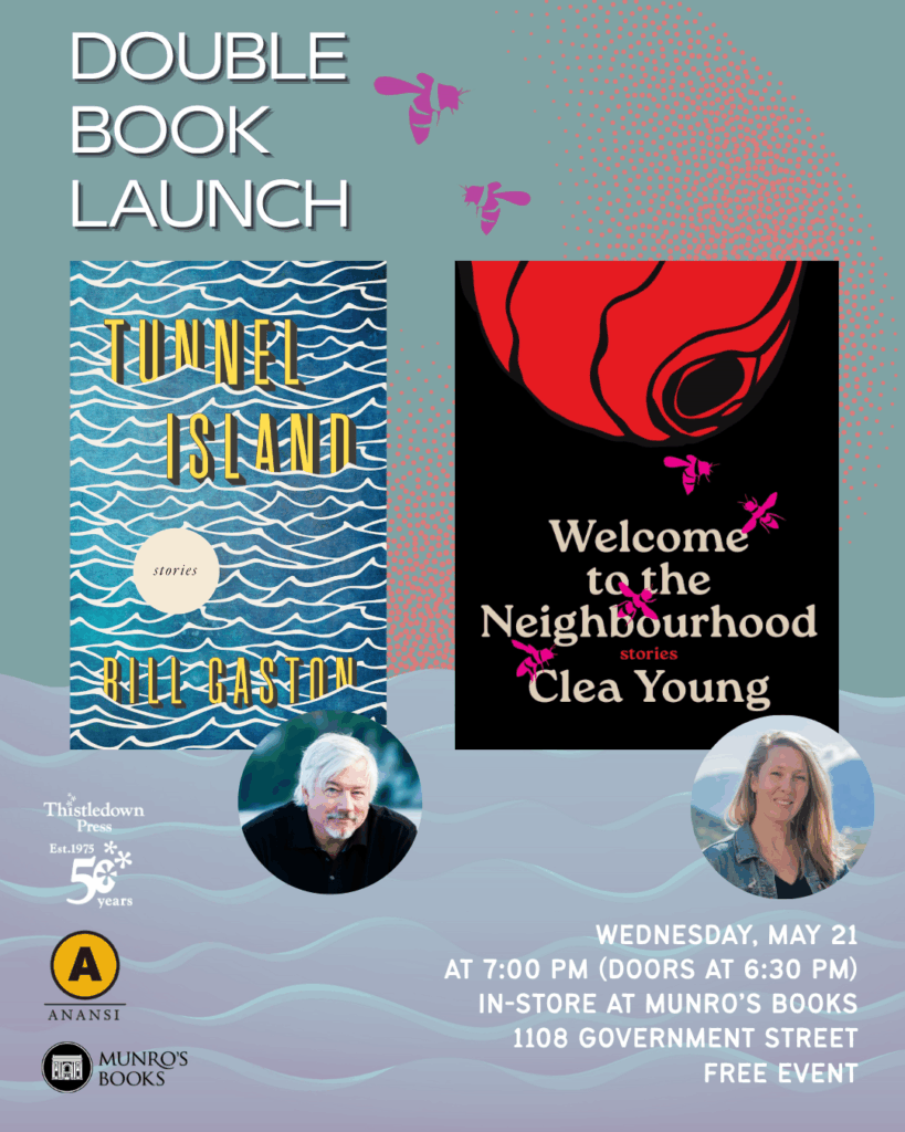 We loved visiting Munro’s Books in Victoria on May 21 for the launch of Tunnel Island by Bill Gaston! Readings, book signings, and conversation from Bill and co-launcher Clea Young (Welcome to the Neighbourhood, House of Anansi Press; May 6, 2025)—plus some limited-edition anniversary swag for attendees! Thanks to all who came out!